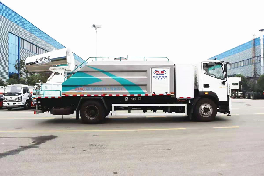 整車性能:后背式磷酸鐵鋰蓄電池機(jī)倉,質(zhì)保五年;駕駛室一鍵操作控制系統(tǒng);罐體碳鋼材質(zhì)或不銹鋼材質(zhì);后平臺加裝80米全自動霧炮機(jī)組,霧化降塵作用。