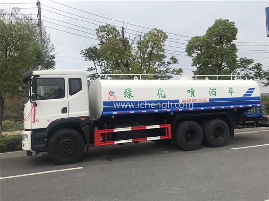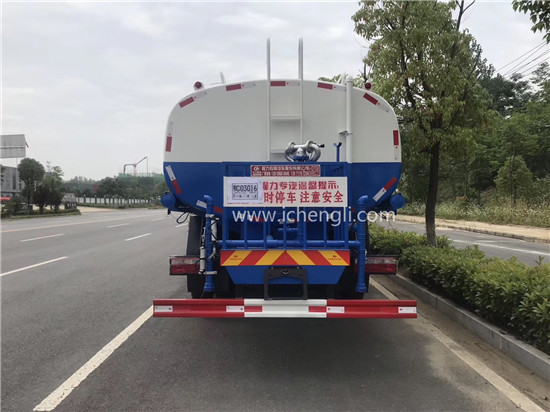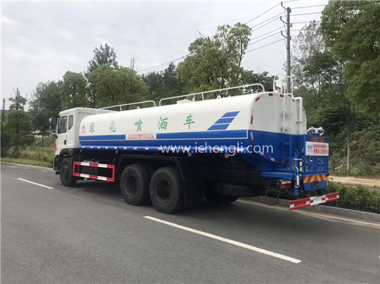 根據(jù)客戶要求:罐體容積約20立方;專用功能為:前沖后灑,帶側(cè)噴,帶高位花灑,罐體后帶工作平臺,平臺上安裝綠化灑水高炮,灑水炮可全方位旋轉(zhuǎn),并有多種雨狀可調(diào)節(jié)(大雨、中雨、毛毛雨、霧狀),泵可自吸自排,帶自流閥,帶消防接頭,帶過濾裝置。