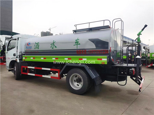 根據(jù)客戶要求:罐體容積約9立方。新款工藝流水線標(biāo)準(zhǔn)化生產(chǎn)灑水車,大氣,漂亮!專用功能為:前沖后灑,帶側(cè)噴,罐體后帶工作平臺,平臺上安裝綠化灑水高炮,灑水炮可全方位旋轉(zhuǎn),并有多種雨狀可調(diào)節(jié)(大雨、中雨、毛毛雨、霧狀),泵可自吸自排,帶自流閥,帶消防接頭,帶過濾裝置。根據(jù)客戶特殊要求加裝新款全自動電子灑水炮,可在駕駛室內(nèi)操作電子炮旋轉(zhuǎn),方向和灑水狀態(tài),操作非常便捷。車輛交付客戶特別滿意!感謝信任!