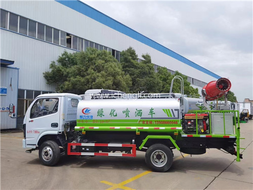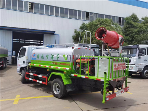 根據(jù)客戶要求:罐體容積約5立方。專用功能為:前沖后灑,帶側(cè)噴,罐體后帶工作平臺,平臺上安裝綠化灑水高炮,灑水炮可全方位旋轉(zhuǎn),并有多種雨?duì)羁烧{(diào)節(jié)(大雨、中雨、毛毛雨、霧狀),泵可自吸自排,帶自流閥,帶消防接頭,帶過濾裝置。根據(jù)客戶特殊要求后平臺加裝全自動柴油機(jī)霧炮噴霧機(jī)組,可做降塵實(shí)用,遙控操作。車輛交付客戶特別滿意!感謝信任!