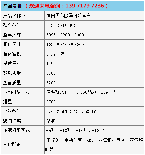 3.6米-4.2米冷藏車銷售熱線:13971797236