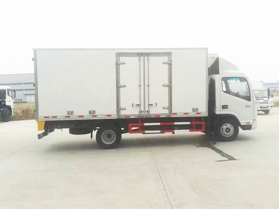 標(biāo)準(zhǔn):冷藏車由專用汽車底盤的行走部分,與隔熱保溫廂體(一般由聚氨酯材料,玻璃鋼組成、彩鋼板、不銹鋼等),制冷機(jī)組,車廂內(nèi)溫度記錄儀等部件組成,對于特殊要求的車輛,如肉鉤車,可加裝肉鉤,攔貨槽,鋁合金導(dǎo)軌,通風(fēng)槽等選裝件。