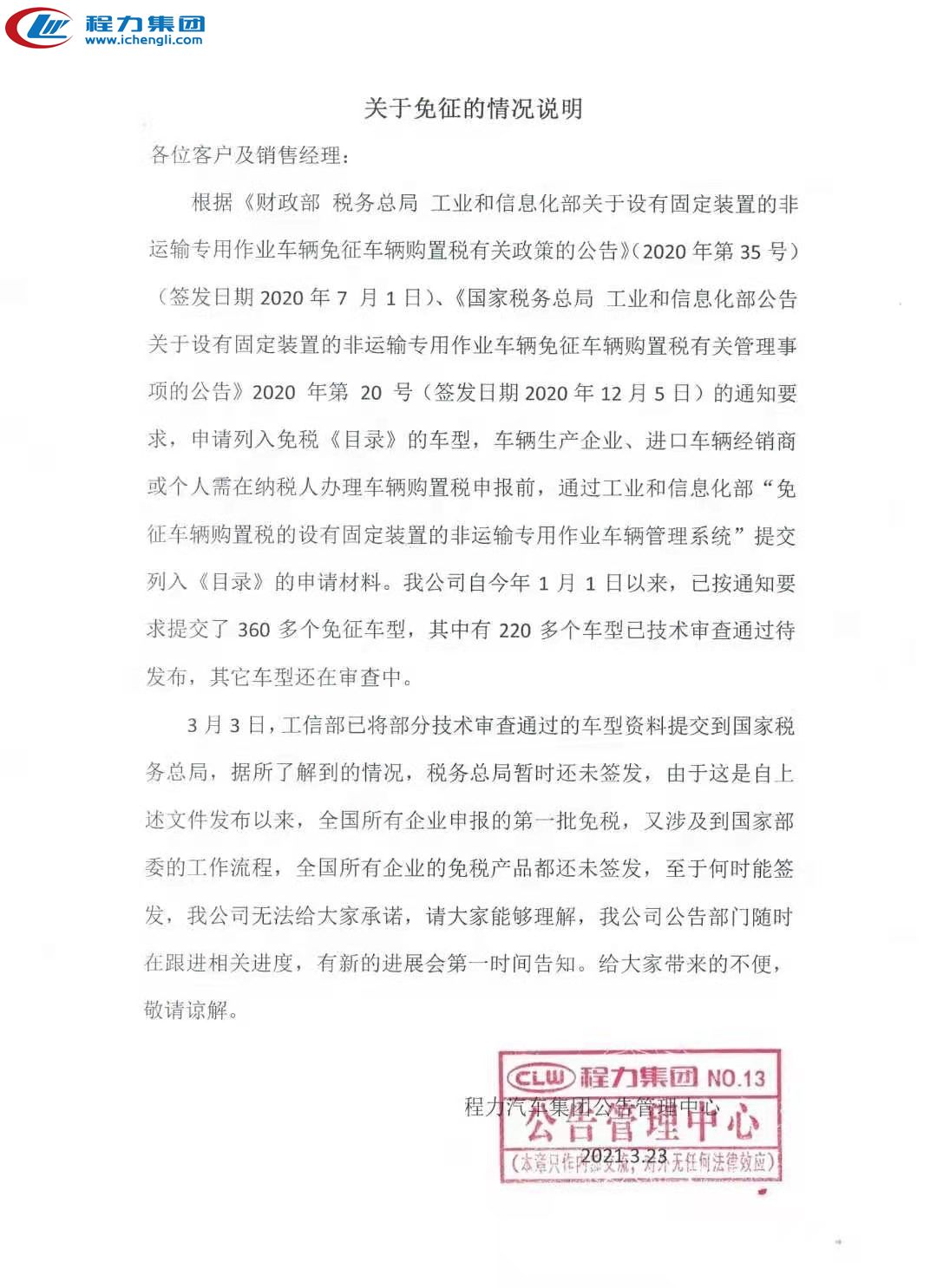 3月3日,工信部已將部分技術(shù)審查通過的車型資料提交到國(guó)家稅務(wù)總局,據(jù)所了解到的情況,稅務(wù)總局暫時(shí)還未簽發(fā),由于這是自上述文件發(fā)布以來,全國(guó)所有企業(yè)申報(bào)的第一批免稅,又涉及到國(guó)家部委的工作流程,全國(guó)所有企業(yè)的免稅產(chǎn)品都還未簽發(fā),至于何時(shí)能簽發(fā),我公司無(wú)法給大家承諾,請(qǐng)大家能夠理解,我公司公告部門隨時(shí)在跟進(jìn)相關(guān)進(jìn)度,有新的進(jìn)展會(huì)第一時(shí)間告知。給大家?guī)淼牟槐?,敬?qǐng)諒解。