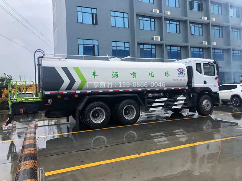 東風(fēng)后雙橋T5灑水車,東風(fēng)T5駕駛室,罐體容積:20立方,采用國六玉柴245馬力發(fā)動(dòng)機(jī)及東風(fēng)康明斯230馬力發(fā)動(dòng)機(jī),法士特八檔變速箱,10.00鋼絲胎,方向助力,斷氣剎,電動(dòng)玻璃,空調(diào),氣囊座椅;罐體容積20立方,整車前沖、后灑、側(cè)噴、高位花灑,帶自吸自排功能,罐體防腐處理,后平臺(tái)帶綠化灑水高炮;其他標(biāo)配。