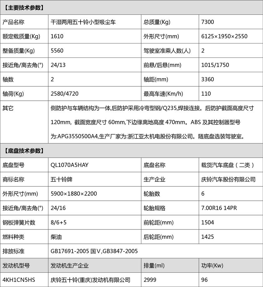 二、五十鈴吸塵車公告參數(shù):