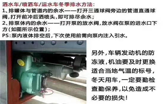 在寒冷的冬季里,應(yīng)將灑水車(chē)水泵和水管內(nèi)的水放空,以防凍裂。我國(guó)北方一般嚴(yán)冬不再施工,所以施工一結(jié)束,就立即將水泵水管內(nèi)的水排空,防患于未然。