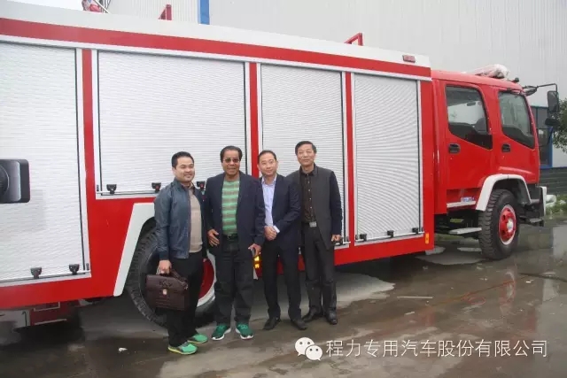 柬埔寨國家安全部部長一行的領(lǐng)導(dǎo)們,對我們程力公司的生產(chǎn)的115臺慶鈴五十鈴泡沫消防車產(chǎn)品感到非常的滿意