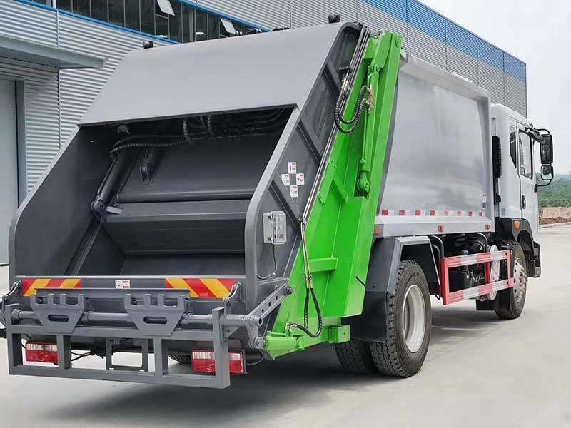 東風(fēng)多利卡D9_10方壓縮式垃圾車(chē),全密封翻轉(zhuǎn)垃圾斗。箱體容積10立方。填充器裝置的底部配有污水收集箱,車(chē)內(nèi)的污水可收集,卸料時(shí)可通過(guò)球閥排出垃圾。手電一體多功能模式。掛鐵桶式翻轉(zhuǎn)機(jī)構(gòu)(選配擇配置氣動(dòng)或手動(dòng)密封蓋)。專(zhuān)用部分由推鏟、多路換向閥、垃圾廂、污水箱、填裝器等組成。填裝器下部設(shè)置有大容量污水儲(chǔ)存箱,污水箱兩個(gè)有大口徑污水排放口;滑板兩側(cè)選用整體尼龍滑塊,具有自潤(rùn)滑性,穩(wěn)定性高,耐磨性能更好;刮板受力部位選用局部加強(qiáng)處理,結(jié)構(gòu)牢固,重量輕。推鏟總成:推鏟由矩形鋼管骨架和折彎板焊接構(gòu)成,推鏟兩側(cè)及頂部安裝有可調(diào)節(jié)的密封條,確保推鏟與箱體間隙,不僅結(jié)構(gòu)輕巧,又能使垃圾均勻分布,卸料干凈徹底。