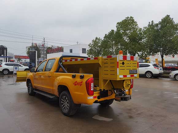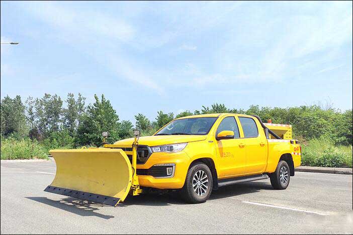 皮卡除雪車(chē)_福田馭途雙排座除雪車(chē),滾刷支撐輪選用實(shí)心橡膠輪胎,360°萬(wàn)向輪設(shè)計(jì)。雪鏟舉升使用雙極油缸設(shè)計(jì),操作利于,安全性更好。掃雪滾刷可隨路面橫坡坡度自動(dòng)調(diào)節(jié)。推雪鏟剛性大,穩(wěn)定性好,運(yùn)動(dòng)平穩(wěn),路面機(jī)械鏟除干凈,工作靠譜。