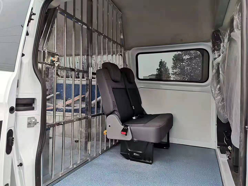 新款2022款福特新全順V362警用囚車(chē)廠家_現(xiàn)貨直銷(xiāo),“六專(zhuān)四室”建設(shè)規(guī)范關(guān)系著司法安全和司法形象。以人情化押運(yùn)囚犯為核心,并融入現(xiàn)代化通訊技術(shù),以保證在押解途中押解對(duì)象的安全。配置先進(jìn),工藝精細(xì),人性化內(nèi)飾設(shè)計(jì),乘駕舒適,齊全的特殊配置,確保轉(zhuǎn)運(yùn)安全,是公安系統(tǒng)選用囚車(chē)時(shí)的首選車(chē)型。整車(chē)選用柴油底盤(pán)加載改裝而成,具有較好的燃油經(jīng)濟(jì)性和優(yōu)越的動(dòng)力性能。