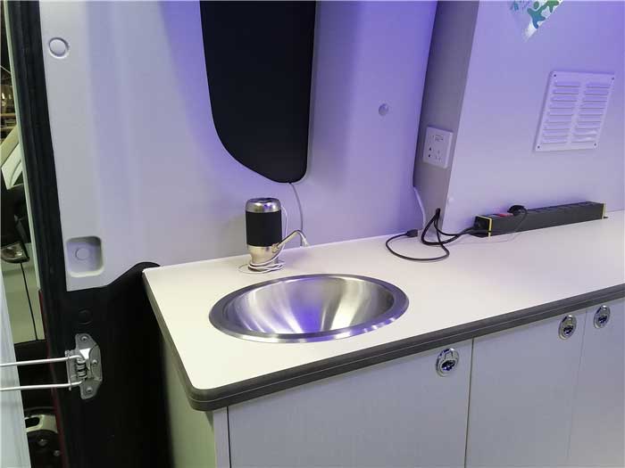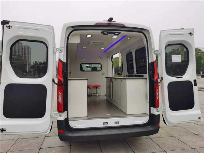 疫苗接種醫(yī)療車_依維柯歐勝高頂醫(yī)療車上裝配置:醫(yī)用空氣凈化消毒器,利用空氣過濾系統(tǒng)不斷的將外部空間的氣體通過進風口與過濾網(wǎng)和空氣凈化過濾器凈化處理后,再放回空氣中,以達到保持車內(nèi)空氣潔凈的效果。頂部12V節(jié)能的LED照明燈,更環(huán)保。車輛后部的左側(cè)為疫苗冷藏區(qū)。中隔板采用高分子材料內(nèi)飾,抗菌、防腐、易清洗。內(nèi)頂采用高分子材料,質(zhì)量好便于清洗。水龍頭是電動的,防止多人接觸,不銹鋼水池,更加耐用。
