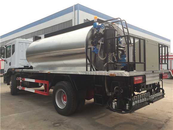 東風(fēng)多利卡D9_9方智能型瀝青灑布車,瀝青罐體內(nèi)部設(shè)有沉淀排污槽,并裝有液位顯示器和報(bào)警、安全裝置。智能瀝青灑布車主要功能和標(biāo)準(zhǔn)型的功能,大致上是相同的,主要是多了一套后工作平臺(tái)的操控系統(tǒng)。和駕駛室里面的一套PRC的電腦控制觸摸系統(tǒng),能精確控制瀝青灑布量。靈活輕便的操縱性。瀝青噴灑桿選取三段折疊式結(jié)構(gòu),可上下移動(dòng)多重噴灑,還能有效避開障礙物。標(biāo)準(zhǔn)的瀝青撒布機(jī)由一個(gè)手動(dòng)控制箱從駕駛室操作。在同類產(chǎn)品各項(xiàng)技術(shù)的基礎(chǔ)上,增加施工的質(zhì)量技術(shù)含量和突出改善施工條件。由汽車底盤、瀝青罐體、瀝青泵送及噴灑系統(tǒng)、導(dǎo)熱油加熱系統(tǒng)、液壓系統(tǒng)、燃燒系統(tǒng)、控制系統(tǒng)、氣動(dòng)系統(tǒng)、操作平臺(tái)構(gòu)成。