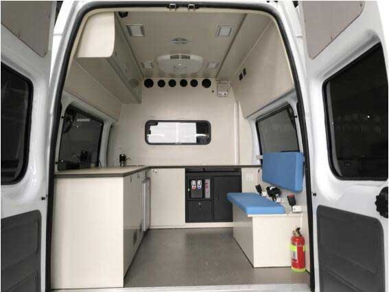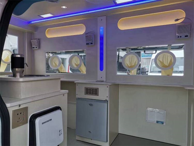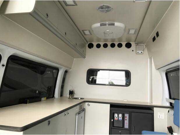 福特新時代全順V348流行病學多功能檢測車,檢測艙配備 1kg 干粉滅火器,遇突發(fā)火災可緊急滅火。車內(nèi)安裝了手持對講機系統(tǒng),12V,輕易工作人員溝通。改裝原材料使用適合相關標準并通過“CCC”質(zhì)量認證的材料。帶充電功能的逆變系統(tǒng),純正弦波2000W。獨立電源中央控制系統(tǒng),采用利于,用電安全。配GPS 導航一體機、 監(jiān)控系統(tǒng)。頂部照明燈,后照明燈使用LED式,節(jié)能環(huán)保,減少整車運行成本。車外螺釘、 螺母、墊片等緊固件優(yōu)先選用不銹鋼,防腐防銹。