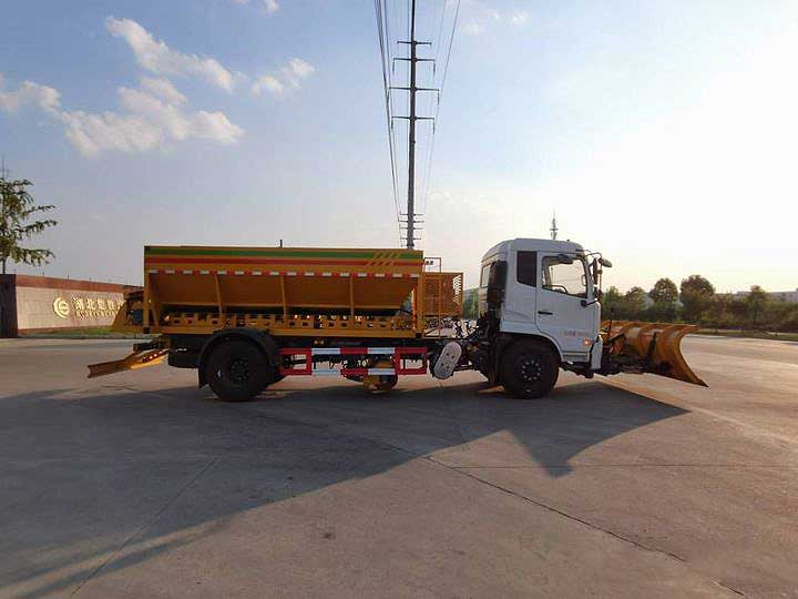 東風天錦12方除雪車,上裝廂體配備高質(zhì)量的融雪撒布機。除雪鏟3-3.5米。除雪鏟結(jié)構(gòu)合理,可將雪推向一側(cè),并能起到拋雪功能,除雪鏟設(shè)防雪棚,具有防止雪飛濺到作業(yè)車擋風玻璃上,以免影響駕駛員視線。刷毛為圓盤式單片組合而成,選取聚丙烯與彈性鋼絲混合排列。車體之外配備照明系統(tǒng),輕易夜間作業(yè)。