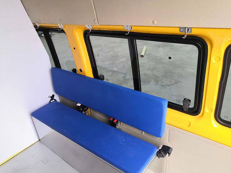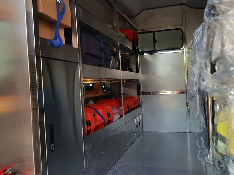 5-9人座工程搶修車_福特V348礦山應(yīng)急氣防車工程搶修車上裝配置:礦山應(yīng)急氣防車的總體結(jié)構(gòu)為駕駛室和艙體、車體。前頂安裝警燈凸臺、長排爆閃警燈,左右兩側(cè)頂藍(lán)色方形LED警燈和白色方形LED警燈,藍(lán)白警燈成對排列,尾門頂部安裝藍(lán)色爆閃燈能夠有效警示。艙體右側(cè)折疊椅的左側(cè)設(shè)有器材骨架Ⅱ,器材骨架Ⅱ后側(cè)配備滅火器。座椅包裹性強(qiáng),用料也挺扎實(shí)的,坐起來很舒服。長排燈、外場照明燈、設(shè)備天線、爆閃燈安裝在車的頂部。外層鋪蓋一層阻燃金屬布,防火性更好,不便于氧化,內(nèi)飾應(yīng)用1.2mm厚網(wǎng)孔板。有助于提高發(fā)動機(jī)的冷卻條件和汽車行駛穩(wěn)定性,車輛內(nèi)部具有極佳的通風(fēng)。