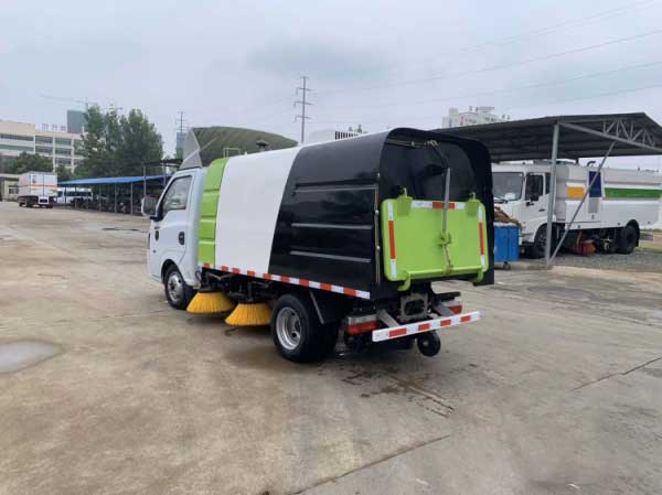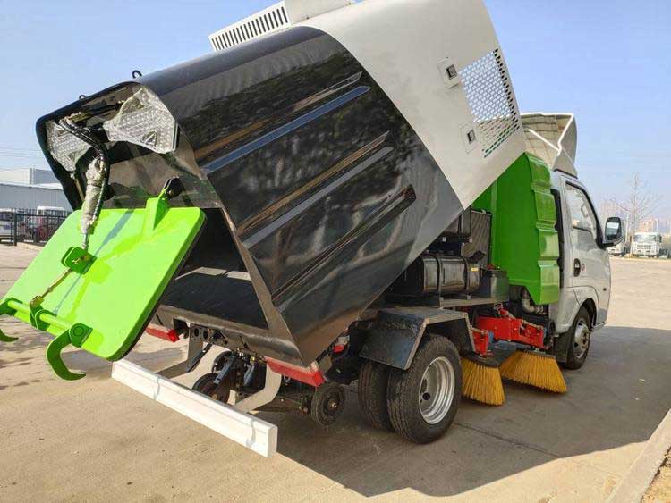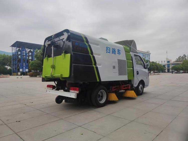 藍牌東風途逸3方掃路車實拍圖_廠家_生產廠家_質量好,可以讓清潔工人身處安全環(huán)境。垃圾箱頂升后,嚴禁掃路車上路行駛。極佳的清潔環(huán)境既提升了城市形象,又有輕松城市文化的建設。