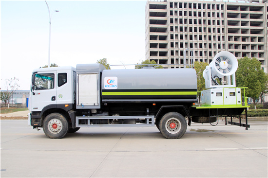 東風D9多利卡抑塵車,帶自吸泵自吸自排,可將池塘的水直接吸入罐體內(nèi)也可直接從城市街道消防栓上連接注水,吸入罐體內(nèi)。罐前量水位管、罐后爬梯、罐上罐口帶簡易護欄、罐側(cè)雙炮筒、4寸鋼絲塑膠管兩根,罐體表面雙層油漆工藝,防銹、耐腐蝕。可安裝50-80型柴油霧炮機組柴油電機組,發(fā)電機內(nèi)置安裝。
