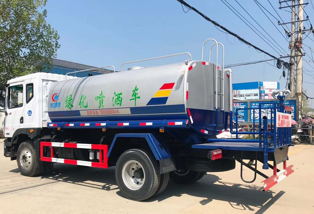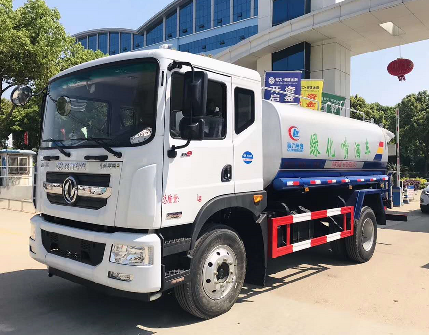這款程力公司出產(chǎn)的東風(fēng)D9大多利卡多功能綠化灑水車,灑水車采用了東風(fēng)股份公司的正宗原裝底盤,東風(fēng)康明斯180馬力發(fā)動機,六缸機,國五排放;帶空調(diào)和方向助力,車頭前配置前沖,后灑,側(cè)噴,高位花灑,后平臺帶綠化灑水車炮,罐體采用4mm武鋼優(yōu)質(zhì)碳鋼制作,裝水12噸;罐體后帶工作平臺,平臺上安裝綠化灑水高炮,炮可噴灑農(nóng)藥,并有多種雨狀可調(diào)節(jié)(大雨中雨毛毛雨霧狀),泵可自吸自排,帶自流閥,帶消防接頭,帶過濾裝置。