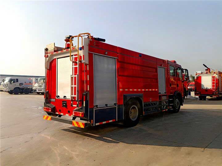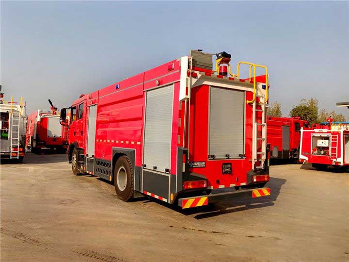 8噸泡沫消防車_重汽豪沃T5G泡沫消防車,為保護水泵及各球閥,在管路中加裝了放余水管路,并分別配有球閥。該車有極其多突出的優(yōu)勢和特點,例如動力澎湃、底盤扎實耐用、機動性強、噴灑射程遠等。車廂采取高強度鋁合金鋼材,內(nèi)外蒙皮采取波紋鋁板整體制造,罐體內(nèi)設(shè)計多道防波隔板。泵房設(shè)置水泵系統(tǒng)、各種儀表、指示燈、液位表、壓力表、真空表等裝置。附在燃燒油料的表面的泡沫把氧氣和易燃物隔絕,缺氧之后燃燒就不能持續(xù),達到了滅火的效果。