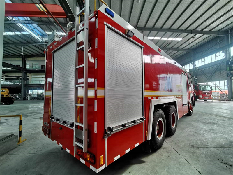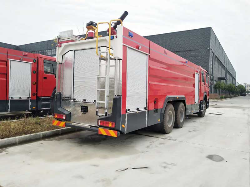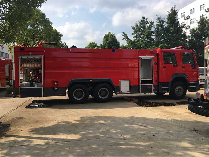 16噸泡沫消防車_重汽豪沃后雙橋泡沫消防車,器材箱內(nèi)設(shè)置有儲(chǔ)物盒,可以放置一些小型工具。載液罐體應(yīng)用的優(yōu)質(zhì)碳鋼材料,罐體內(nèi)部應(yīng)用特殊底漆噴刷,防止生銹、腐蝕。設(shè)有工具箱及卷簾門,可放置小型工具。主框架結(jié)構(gòu)選取優(yōu)質(zhì)方管焊接,外裝飾板選取碳鋼板焊接。車內(nèi)器材應(yīng)用專用夾具固定,器材是由防腐蝕、防震動(dòng)和防脫落的專用材料制成。