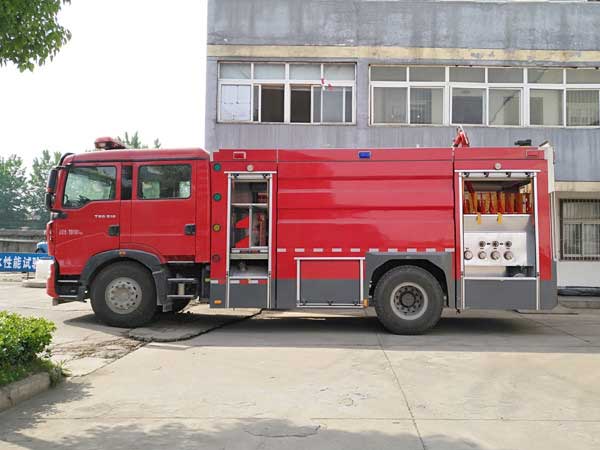 8噸水罐消防車_重汽豪沃T5G水罐消防車功能特點:車身顏色為消防車通用消防紅,油漆使用工藝,運用轎車油漆處理技術(shù),增強油漆附著力、均勻性,耐用性;我廠具有國內(nèi)的烘干設(shè)備,嚴格做到工作時防塵,無污染。水泵的位置中置或后置,泵房和器材箱左右兩側(cè)安裝有新款易拉高強度鋁合金卷簾門。為了更精確對準著火點滅火,箱體配備有爬梯,消防員能夠借助爬梯登上箱體操作消防水炮。機動靈活、操控性好、維修簡便。