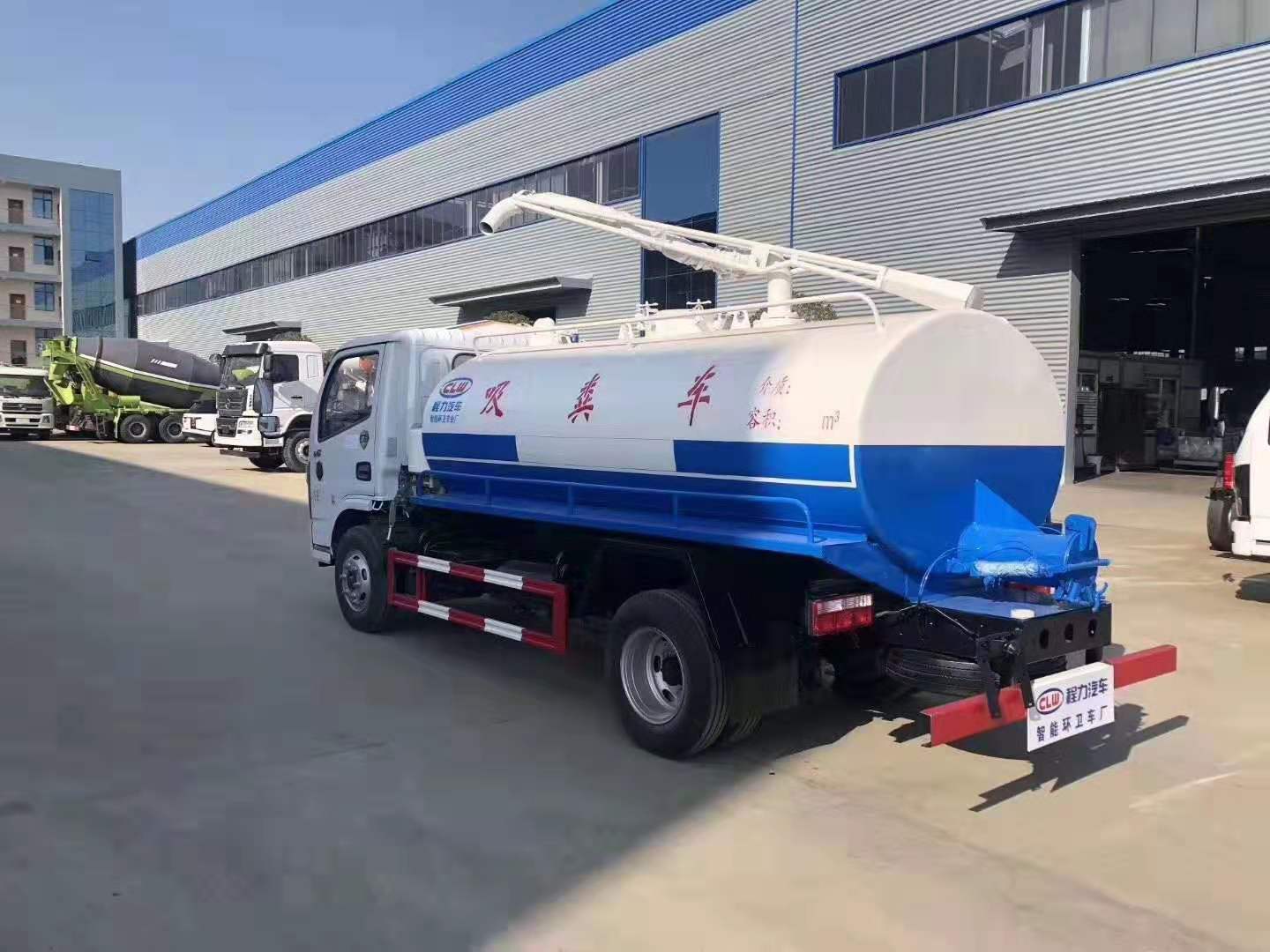 上裝配置:罐體實際容積5.4立方,專用部分由取力器、傳動軸、真空吸糞泵、水氣分離器、油氣分離器、多路換向閥、吊桿、糞罐、放糞閥、清水箱、視糞窗、真空壓力表、管網(wǎng)系統(tǒng)等組成。