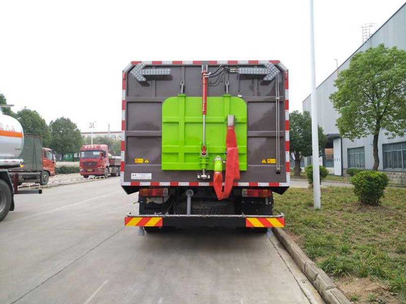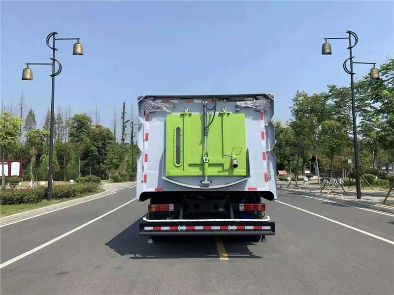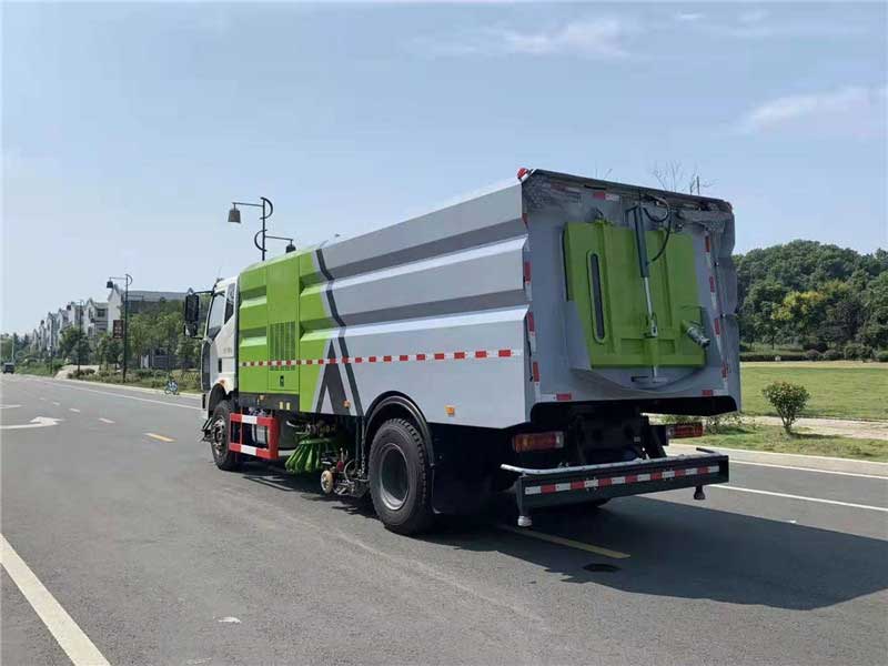 國(guó)6最新解放J6_16方洗掃車實(shí)拍圖_生產(chǎn)廠家 參數(shù),后輪前設(shè)有強(qiáng)磁力吸附總成(磁力吸附器),能有效吸附鐵釘?shù)燃怃J黑色金屬物,防止作業(yè)過(guò)程中扎輪胎。左、右高壓側(cè)噴桿與吸嘴“V”型布置,液壓操作收放,并可調(diào)整“V”形角度及高壓水噴嘴角度,水流沖擊力大,能高效匯集污水,并具噴桿有防撞和自動(dòng)復(fù)位功能。離心風(fēng)機(jī)具有效率高,噪音低,性能曲線平坦,高效區(qū)寬廣等特點(diǎn)。自動(dòng)離合器驅(qū)動(dòng)風(fēng)機(jī)和高壓水泵,減輕風(fēng)機(jī)啟動(dòng)和停止時(shí)對(duì)發(fā)動(dòng)機(jī)的沖擊。駕駛室后下方裝有低壓前沖,沖洗寬度可達(dá)24m,可像灑水車一樣對(duì)路面進(jìn)行大面積沖洗。