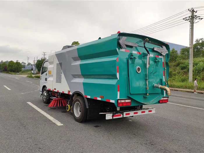 多利卡D6_6方洗掃車,清洗路沿石,可同時對路沿石立面、貼近路沿的路面進行洗刷,對路沿石頂面進行沖刷,并將污水和垃圾收走,能不差的解決路沿清潔問題。先進的“觸摸屏+CAN總線控制+PLC”的電控系統(tǒng)模式,操作方便,安全性高。洗掃車作業(yè)時先用邊刷將道牙處的垃圾向中間集中,再用高壓水進行清洗,然后由吸口將污水及垃圾吸到污水箱中。副發(fā)油門、掃盤升降、掃盤旋轉等作業(yè)裝置可裝配“一鍵式”智能控制,操作更輕易、更省心。液壓元件使用集成疊加設計,駕駛室電液集中控制,操作容易。多利卡D6_6方洗掃車采用副發(fā)動機或電機亦有混合動力系統(tǒng)驅動高壓水泵、風機及工作裝置。手持不銹鋼噴槍配快速接頭,能容易地與沖洗卷盤連接或脫開。