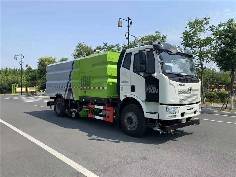 解放J6_16方洗掃車質(zhì)量好,是廣大市政環(huán)衛(wèi)部門的購車首選。用它來洗掃城鎮(zhèn)街邊馬路再合適不過了。洗掃車的采取相對于人工清掃來說是可以發(fā)揮它應(yīng)有的優(yōu)勢的,較大程度上提高清掃的效率以及清掃的潔凈程度。