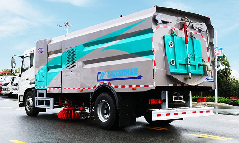 東風(fēng)D9純電動(dòng)洗掃車(chē),底盤(pán)采用東風(fēng)純電動(dòng)二類(lèi)底盤(pán),各總成匹配合理,完全達(dá)到國(guó)家對(duì)于新能源產(chǎn)品底盤(pán)的各項(xiàng)法規(guī)要求、可靠性高。軸距5300MM,電池品牌:寧德時(shí)代,電池電量:314KWH,建議充電樁功率:120KW,充電時(shí)間:2.5小時(shí)。上裝容積14方(7水7塵),中置2掃盤(pán),力頓馬達(dá),GTM高壓水泵,皖液齒輪泵,海普瑞斯液壓油缸,萬(wàn)向高壓路沿清洗,免維護(hù)離心式風(fēng)機(jī),不銹鋼水箱、垃圾箱,不銹鋼高壓管路、施耐德控制開(kāi)關(guān)、美國(guó)傳感器、尾部LED箭頭燈;垃圾箱、水箱均帶防溢或低水位報(bào)警裝置,倒車(chē)及洗掃狀態(tài)室內(nèi)監(jiān)控系統(tǒng),尾部帶電控操作系統(tǒng),15M高壓沖洗卷盤(pán),最大清掃寬度3.5m,高壓沖洗21m。