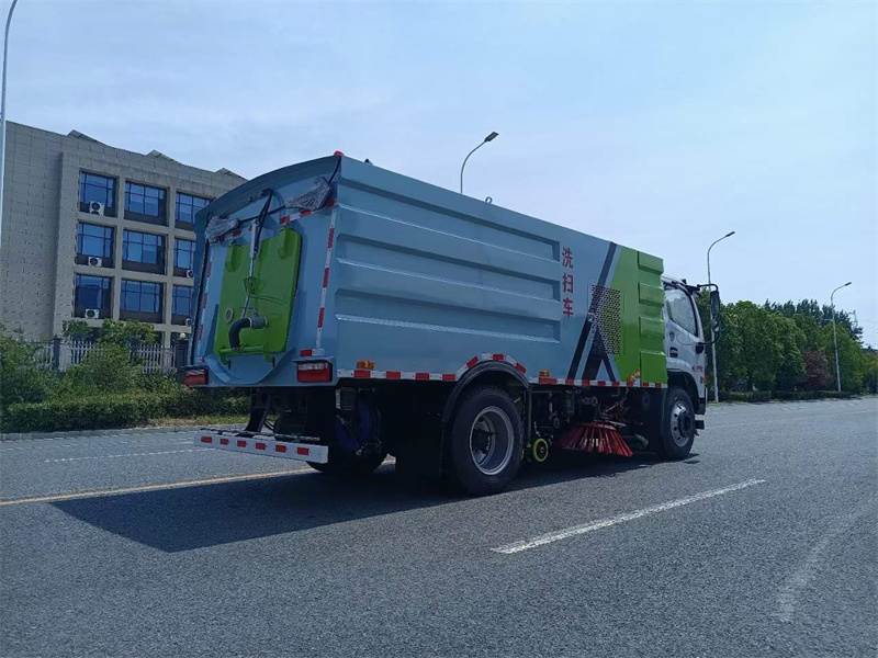 東風多利卡D7_9方洗掃車,集掃路車和高壓清洗車功能于一體,實現在一次作業(yè)中完成清掃、高壓清洗和垃圾、污水的收集。駕駛室后下方裝有低壓前沖,沖洗寬度可達24m,可像灑水車一樣對路面進行大面積沖洗。選取刷洗和高壓清洗的掃洗結合、垃圾收集、污水回收、液壓傾翻卸料的作業(yè)方式對路面進行刷洗作業(yè)。后輪前設有強磁力吸附總成(磁力吸附器),能有效吸附鐵釘等尖銳黑色金屬物,防止作業(yè)過程中扎輪胎。不僅能夠在室內運行,而且能夠在室外運行,操作有利于便于。具有舉升功能的垃圾箱內裝配有高壓沖洗噴頭,使得卸料更為利于、干凈徹底。車尾裝有后噴霧桿,可進行路面噴霧保濕降塵。