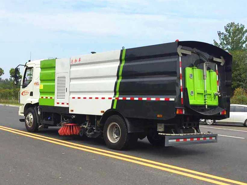 柳汽乘龍M3_16方洗掃車,掃盤(pán)具有避障保護(hù)功能和復(fù)位功能。垃圾箱內(nèi)配有防溢報(bào)警裝置和高壓噴霧清洗裝置。駕駛室后部和箱體中間安裝有梯子,以方便操作員上下車并觀察箱內(nèi)的情況。LED燈安裝在尾部,以保證安全。掃盤(pán)轉(zhuǎn)速根據(jù)不同清洗條件進(jìn)行調(diào)整,以確保在不同污染條件下特別好的清洗效果。不銹鋼水箱,不銹鋼垃圾箱,卸料門(mén)開(kāi)啟速度為45度。