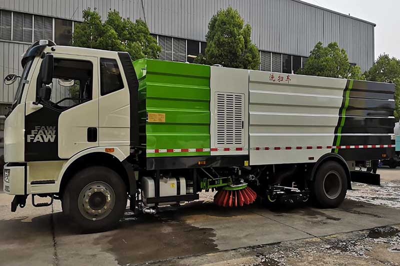 [熱門車型]解放J6_16方洗掃車哪里買,在實(shí)際選用中,一次清洗作業(yè)后路面清潔率可達(dá)90%以上。洗掃車其功能包含了掃路車、高壓清洗車、灑水車的功能。