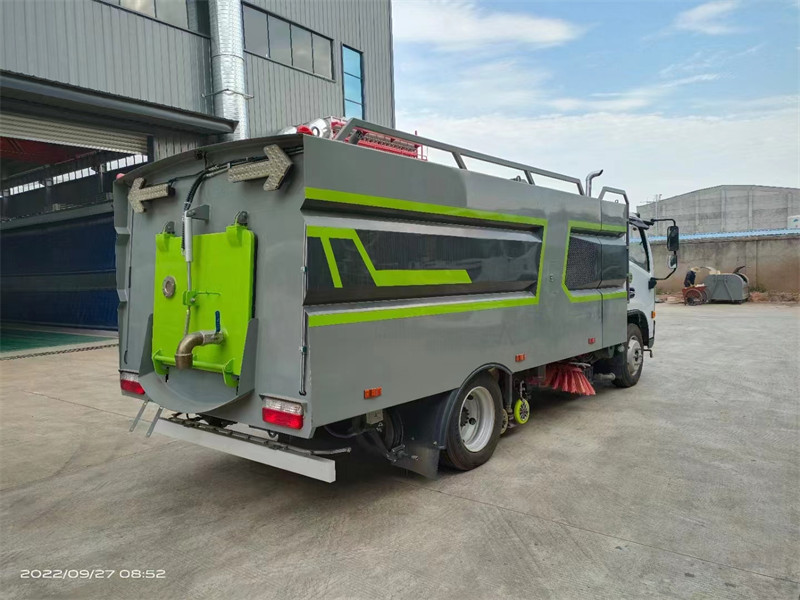 多利卡D7_9方洗掃車(chē)上裝配置:清掃寬度:3.3m-3.5m。水箱5方,垃圾箱4方。掃盤(pán)具有自動(dòng)避障保護(hù)功能,遇障礙物自動(dòng)復(fù)位功能,遇障礙物自動(dòng)收放,過(guò)障礙物自動(dòng)回位。高壓沖洗卷盤(pán)20m。