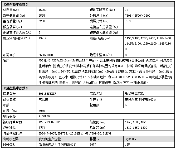 配置一:東風(fēng)大福瑞卡F9系列駕駛室,3950mm軸距,云內(nèi)德威170馬力(D30TCIF1)發(fā)動機,國六排放,8檔變速箱(高低檔),9.00R20鋼絲胎,原裝空調(diào),電動窗,中控鎖,氣囊座椅,ABS,氣剎,方向助力;