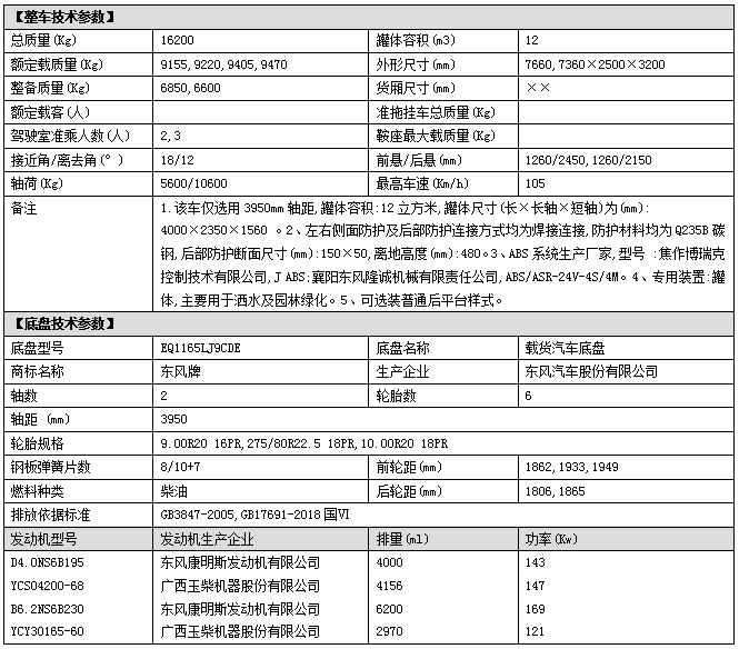 配置二:東風(fēng)D9多利卡系列駕駛室,3950mm軸距,東風(fēng)康明斯195馬力(D4.0NS6B195)發(fā)動(dòng)機(jī),國(guó)六排放,陜齒8檔變速箱,275/80真空胎,原裝空調(diào),電動(dòng)窗,ABS,氣剎,方向助力;