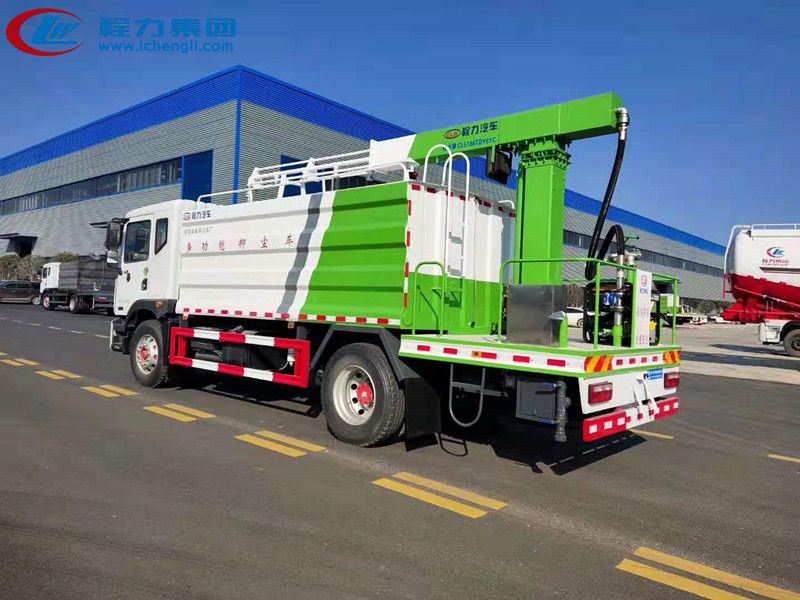 上裝配置:罐體容積:15立方,罐體內(nèi)部做防腐,帶加熱功能,前沖、后灑、側(cè)噴、高炮,抑塵噴灑桿(帶旋轉(zhuǎn)伸縮功能),噴灑桿離地3-4米 。后部平臺(tái)帶8KW副發(fā)電機(jī)組,罐體內(nèi)部加兩個(gè)1.5KW電動(dòng)馬達(dá)(帶攪拌功能),平臺(tái)和噴灑桿藍(lán)色。遙控操作噴灑桿上下左右旋轉(zhuǎn),國(guó)內(nèi)知名品牌回轉(zhuǎn)支撐,大品牌油缸。