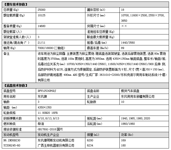 配置二:東風(fēng)后雙橋?qū)S玫妆PD3系列新款駕駛室,4350+1350mm軸距,玉柴245馬力(YCS06245-60)發(fā)動機,國六排放,大同10檔變速箱,11.00R20鋼絲胎,原裝空調(diào),電動窗,ABS,斷氣剎,方向助力,中控鎖;