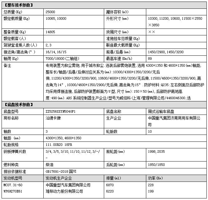 上裝配置:罐體容積:18立方,方形罐體,罐體鋼板采用Q235碳鋼鋼材制作,鋼板厚度5mm,配大功率專用灑水車泵,帶前沖、后灑、側(cè)噴功能,尾部帶工作平臺(tái),平臺(tái)上安裝綠化高炮和風(fēng)筒式霧炮機(jī)(霧炮可用于農(nóng)藥噴灑、多功能抑塵等功能),帶柴油副發(fā)電機(jī)組,操控方式:手動(dòng)/無(wú)線遙控器(遙控距離100米),帶消防接口,自流閥、可自吸自排,該車輛結(jié)構(gòu)緊湊,布局合理,部件做工精細(xì),產(chǎn)品配置完善,操作性能好。后平臺(tái)可選裝50-60米、60-70米、80米、100米、120米霧炮機(jī)組;其他標(biāo)配。